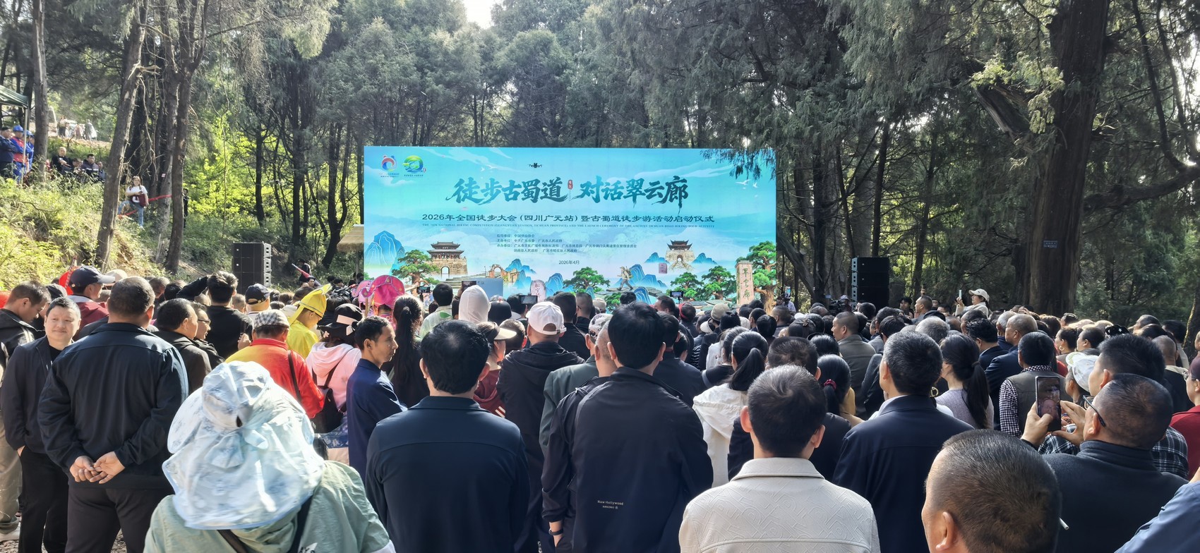 2026年全国徒步大会(四川广元站)暨古蜀道徒步游剑阁分会场活动在白龙镇启动,同步在剑门关镇、普安镇、汉阳镇、柳沟镇、龙源镇5个乡镇设立活动点位,吸引全国各地徒步爱好者参与